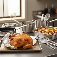 Store leftover chicken and vegetables in an airtight container in the fridge for up to 3 days. Keep the sauce separate. To reheat, place the chicken and vegetables on a baking sheet and warm in the oven at 180°C for 10-15 minutes. Gently heat the sauce in a saucepan, adding a little water or broth if needed to restore its proper consistency.