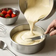 A delicate, fluffy sponge cake combined with a light whipped cream and juicy strawberries — a version inspired by the classic strawberry shortcake, but with a personal touch: lemon-vanilla syrup, a thin layer of jam as a glaze, and the option to enrich the cream with mascarpone or stabilize it with gelatin. The cake features a subtle sweetness, the freshness of the fruit, and a delicate, creamy texture. Perfect for afternoon coffee, family gatherings, or as a dessert for special occasions — it looks impressive while being light and easy to slice.
