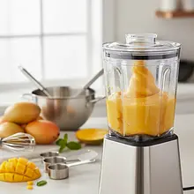 Once the entire mango is crushed, turn the blender to continuous high speed. This is where the magic happens! Watch as the crumbly mixture starts to come together, and in a moment, within about 1-2 minutes, it transforms into a perfectly smooth, thick, and creamy puree. While blending, if you wish, add lime juice and a pinch of salt to enhance the flavor.