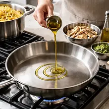 Heat a large skillet (preferably 26-28 cm) over medium-high heat. Add 15 ml of olive oil and 10 g of butter — wait for the butter to melt and start to sizzle lightly, but do not let it burn. Place the chicken fillets in the skillet and fry for 3-4 minutes without moving them, until a golden-brown crust forms on one side. Flip the fillets and fry for another 3-4 minutes. Check the internal temperature: it should reach 74°C, or cut into the thickest part — the meat must be white, with no pink inside, and the juices should be clear. After frying, set the chicken aside on a cutting board and let it rest for 4-5 minutes — the juices will redistribute evenly.