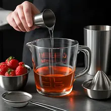 Prepare a simple 1:1 syrup. Measure 80 g of sugar and 80 ml of water. In a small saucepan, combine the sugar and water, heating over medium heat, stirring with a wooden spoon until the sugar completely dissolves. When the mixture starts to gently boil, reduce the heat and cook for 1 minute uncovered. Remove from heat and let it cool (about 10–15 minutes). Once cooled, the syrup will be clear and slightly sticky. Measure out 80 ml of the resulting syrup for later use.