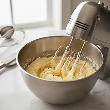 In a large mixing bowl, place the soft butter (at room temperature) and the fine sugar. Using the paddle attachment, beat the ingredients on medium speed for about 8-10 minutes. The mixture should become very light, almost white, and noticeably increase in volume, resembling a fluffy cream. This is a crucial moment for the texture of the cake.