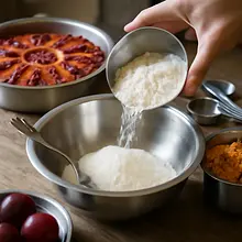 Plums as an addition to cakes are popular in Central European kitchens — in many traditional recipes, plums have been used both fresh and dried, as they perfectly balance the sweetness of the cake with their acidity and juiciness.
