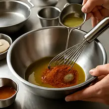 Use a metal or glass bowl. If you don't have a spice measure, use a teaspoon; remember that cumin has an intense flavor. Do not use hot oil.