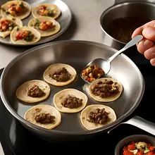 Mini tacos are small, impressive snacks inspired by Mexican cuisine, perfect for parties like New Year's Eve 2025. They consist of small corn tortillas filled with aromatic, seasoned chicken meat, fresh tomato salsa, grated cheese, and toppings such as avocado or sour cream. They offer contrasting flavors — the spicy and citrusy notes of the meat with the freshness of the salsa and the creaminess of the avocado — and are visually appealing on a platter: colorful fillings, green cilantro leaves, and thin slices of lime. Serve them on a large platter as finger food, alongside bowls of extra salsa, limes, and sour cream. The recipe includes detailed step-by-step instructions, times, and tips for those making the dish for the first time.