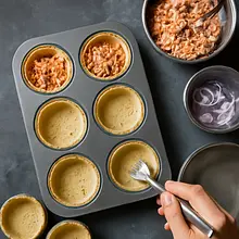 Best tools: rolling pin, tartlet molds with a diameter of 6 cm (12 pcs). If you don't have molds, you can use a muffin tin, but remember to grease it well.