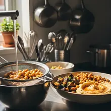 Cooking quinoa and preparing hummus