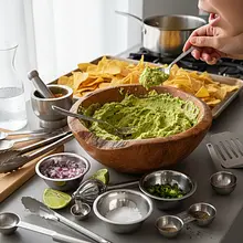 Podawaj guacamole w kamiennym moździerzu (molcajete) dla autentycznego wyglądu. Oprócz nachosów, świetnie pasuje jako dodatek do quesadillas, tacos, burrito lub jako smarowidło do grzanek. Możesz też podać obok inne salsy, np. salsę roja (pomidorową) i gęstą, kwaśną śmietanę.