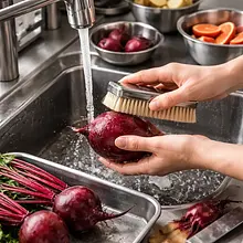 Preheat the oven to 200°C (top-bottom). Wash the beets under running water with a brush, trim the ends and tails, but do not peel them. Wrap each bulb individually in aluminum foil to retain moisture, and place them on a baking sheet lined with parchment paper. Bake for 45-60 minutes depending on size (for a total weight of 600 g, usually 50-55 minutes). Check for doneness by inserting a knife or fork into the thickest part – it should go in smoothly, and the beet should be soft inside.