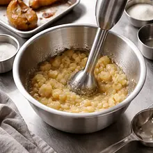 In a bowl, mash the flesh of 420 g of baked pears with a fork (or an immersion blender) until smooth puree. In a small saucepan, heat 50 ml of cream with 3 g of agar-agar, stirring until it comes to a boil; cook for 1 minute to dissolve the agar, then remove from heat and let cool for 3-4 minutes (it should be warm, not hot).