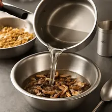 Use a glass bowl and cover it with a plate to prevent the water from cooling too quickly. If there is sand at the bottom, strain the liquid through cheesecloth and discard the sediment. You can add the soaking liquid later to the filling for a more intense flavor.