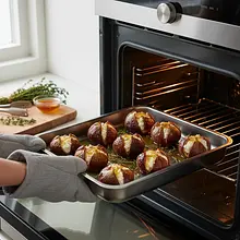 Wstaw naczynie do nagrzanego piekarnika i piecz przez 10-12 minut. Figi są gotowe, gdy staną się bardzo miękkie, ser kozi lekko się rozpuści i zarumieni, a szynka prosciutto stanie się delikatnie chrupiąca na brzegach. Z owoców zacznie wypływać gęsty, aromatyczny syrop.