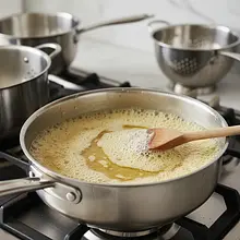 The name of the sauce 'beurre noisette' comes from French and literally means 'hazelnut butter'. This name does not come from the addition of nuts, but from the intense, nutty aroma that butter acquires during heating, when its solid particles (milk proteins) caramelize in a process called the Maillard reaction.