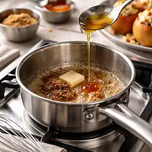 Drizzle the hollowed-out apples with the juice of half a lemon (about 1 teaspoon of juice per apple) to prevent browning and add freshness. Arrange the apples in a baking dish, keeping about 2 cm of space between them.