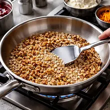 Preheat the oven to 190°C (top-bottom). Wash the kaki under running water and dry with a paper towel. Cut each kaki in half crosswise (along the shorter axis) to create two 'boats'. Using a small spoon or knife, gently scoop out the center with the seeds (if present) and part of the flesh, creating a cavity about 3-4 cm in diameter and 1-2 cm deep — this will be the space for the cream. Place the halves skin side down on a baking sheet lined with parchment paper, lightly brush 10 g of butter on each half (spread with a brush) and bake for 12-15 minutes until the edges start to soften slightly and the top is lightly golden. After baking, let cool for 10 minutes.
