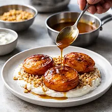 Preheat the oven to 200°C (top-bottom). Wash and dry the persimmons. Cut each persimmon in half horizontally, removing any leaves. Place the halves cut side down on a baking sheet lined with parchment paper, so the flesh is exposed. Bake for 18–22 minutes, until the flesh softens and begins to brown slightly — it should be very soft to the touch (use a teaspoon to check). After removing, let cool for 5 minutes.