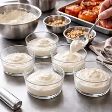 In a bowl, place the ricotta (250 g). Add 30 g of honey (the remaining half), the grated zest of 1/2 lemon (grate the yellow part thinly), and the juice of 1/2 lemon (about 10–15 g). Add vanilla extract (5 g). Whisk by hand or use a mixer on low speed for 1–2 minutes until the cream is smooth and slightly fluffy. Taste and if necessary, adjust with an additional teaspoon of honey or a pinch of salt – the cream should be distinctly creamy, slightly tangy, and not too sweet.