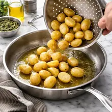 Store leftovers in an airtight container in the fridge for up to 2 days. To reheat and regain crispiness, preheat the oven to 200°C and heat the potatoes on a baking sheet for 8–12 minutes, until they are golden again. Avoid the microwave — the potatoes will become soft and rubbery.