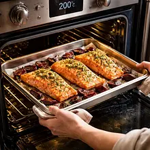 Salmon has been valued in the kitchens of Northern Europe and Scandinavia: during the winter months, fatty fish like salmon provided essential calories and omega-3 fatty acids. The combination with roasted roots is a seasonal classic, where the sweetness of the vegetables enhances the flavor of the fish.
