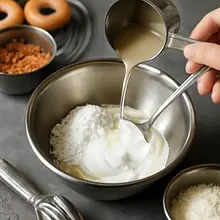 Prepare a baking tray lined with parchment paper or a silicone mat. If you want to achieve uniform donuts, weigh out portions of the dough: the entire batch should be enough for about 12 pieces; weigh each portion to about 65-70 g. Scoop portions using an ice cream scoop or two spoons. To create the characteristic hole in the center, you have two methods: a) Use a piping bag with a large round tip and pipe circles onto the paper (circles with a diameter of 7-8 cm). b) Form a ball from each portion, gently flatten it in your hand into a patty about 1-1.5 cm thick, then use your finger or a small cap to make a hole in the center, rotating your finger to create an even hole. Leave about 3-4 cm of space between the donuts.