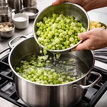 Place the chopped celery in a large pot and cover it with cold water so that the water covers the vegetable by about 2 cm. Add 1 pinch of salt from the specified amount (1 g). Put the pot over high heat, bring to a boil uncovered, reduce the heat to medium, and cook for 20-25 minutes until the pieces are very soft — check with a fork: the fork should go in easily.