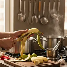Prepare the plantains. The skin of a green banana is tough and cannot be peeled like a regular banana. Cut off both ends of the fruit. Then, make lengthwise cuts in the skin into 3-4 sections, but only to the depth of the skin, without touching the flesh. Use a knife or your fingers to lift the skin and peel it off in strips.
