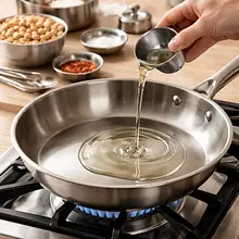 Prepare all the ingredients and tools: a large, dry pan (preferably cast iron or steel with a diameter of 26–28 cm), a wooden spoon, a spatula, a large metal or ceramic mixing bowl, a sheet of baking paper or a large tray. Measure out the spices in small bowls so that everything is at hand during caramelization.