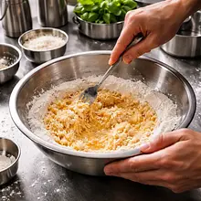 Start by preparing the yeast starter. In a small bowl or cup, place the crumbled fresh yeast. Add one teaspoon of sugar. Pour in about 100 ml of warm water (from the total of 300 ml). The water should be pleasantly warm, like bath water for a baby (around 37°C), but not hot, as it will kill the yeast. Gently mix with a fork until the yeast and sugar dissolve. Set the bowl in a warm, draft-free place for about 10-15 minutes. After this time, a thick, beige foam should appear on the surface. This is a sign that the yeast is active and ready to work.