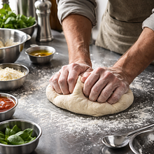 Place the dough on a lightly floured surface and start kneading. Knead vigorously for 8-10 minutes: stretch the dough to the side, fold it in half, and press with the inner part of your hand. Repeat the movements, turning the dough a quarter turn each time. If you are using a mixer, knead for 6-7 minutes with a dough hook on medium speed.