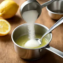 Prepare the syrup: in a small saucepan, mix 60 g of lemon juice (previously squeezed) with 50 g of powdered sugar (regular sugar dissolved can be used) and 1 tablespoon of water (15 ml). Gently heat over low heat, stirring until the sugar completely dissolves — about 2–3 minutes, do not bring to a boil. Remove from heat and set aside to cool slightly.