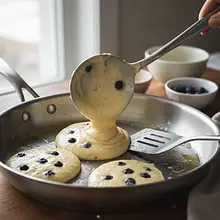 Discover the secret to perfectly fluffy, cloud-like blueberry pancakes that melt in your mouth. Our recipe is the essence of a weekend, lazy breakfast that turns every morning into a little celebration. The secret to their extraordinary texture is the use of buttermilk combined with baking soda, creating a magical reaction that lightens the batter from within. The pancakes are gently sweet, with a hint of vanilla and the refreshing acidity of lemon zest, while the juicy blueberries burst with flavor in every bite. They look beautiful – golden, appetizingly browned, with purple flecks of fruit. They pair perfectly with maple syrup, fresh fruit, or a dollop of natural yogurt. This dish will be loved by both children and adults, and it's easier to make than you think!