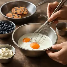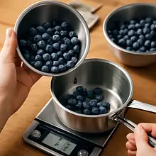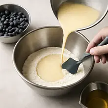 Prepare the berry compote: weigh 180 g of berries (from a total of 250 g) and place them in a small saucepan. Add 50 g of sugar for the compote and 1 tablespoon (15 ml) of water. Set over medium heat. When the sugar starts to dissolve (after about 1-2 minutes), gently stir with a wooden spoon to avoid mashing the berries into a puree. Once the mixture begins to bubble, reduce the heat and cook for 4-6 minutes — the berries should release their juice, and some of the fruit should retain its shape. If you want a thicker compote, cook for an additional 1-2 minutes.