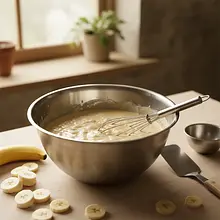 Peel the bananas and place them in a medium-sized bowl. Using a fork, mash them into a smooth, uniform mixture. There should be only very small lumps remaining. The riper the bananas, the easier they will be to mash and the sweeter the pancakes will be.