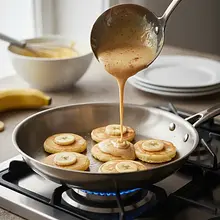 Serve the banana pancakes warm, stacked in an appetizing pile. They taste fantastic with a dollop of thick Greek yogurt or skyr, which balances their sweetness. Generously sprinkle them with fresh berries, such as blueberries, raspberries, or strawberries, which will add freshness and vitamins. You can drizzle the whole thing with a stream of maple syrup, honey, or liquid peanut butter. For crunch, top with toasted walnuts, almonds, or pumpkin seeds.