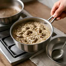 Risotto is best consumed immediately. If there are leftovers, store them in the refrigerator in an airtight container for up to 24 hours. When reheating, add a bit of hot broth or milk and warm it over low heat, stirring to regain creaminess. Do not freeze — the texture of the rice will significantly deteriorate.