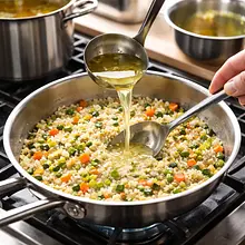 Risotto comes from northern Italy (the regions of Lombardy and Piedmont). Traditionally, the creaminess of risotto is achieved by slowly adding broth and vigorously stirring, which releases the starch from the rice grains.