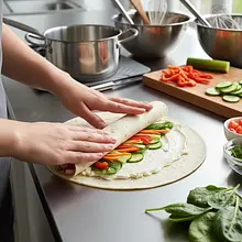 Roladki z tortilli to idealna, błyskawiczna przekąska na każdą imprezę, a w szczególności na Sylwestra. Są niezwykle proste w przygotowaniu, a jednocześnie efektownie prezentują się na stole, zachwycając kolorami i smakiem. Ich fenomen polega na połączeniu miękkiego, pszennego placka z kremowym, wyrazistym nadzieniem na bazie serka śmietankowego oraz chrupiącymi, świeżymi warzywami. Każdy kęs to eksplozja tekstur – od delikatności tortilli, przez aksamitność serka, po orzeźwiającą chrupkość papryki i ogórka. Można je dowolnie modyfikować, dodając ulubione składniki takie jak szynka, wędzony łosoś czy rukola. Podane w formie małych, zgrabnych ślimaczków, są wygodne do jedzenia "na jeden kęs", co czyni je idealnym finger food. To danie, które przygotujesz bez stresu na ostatnią chwilę, a goście z pewnością poproszą o przepis.