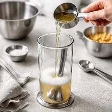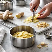 Weigh 12 g of dried hibiscus and place it in a heatproof jug or a large glass bowl. Boil 600 ml of water and immediately pour it over the hibiscus with hot water. Cover the vessel with a cloth or plate and let it steep for 8 minutes — the infusion should have a deep ruby color, intense aroma, and delicate acidity. After 8 minutes, strain through a fine sieve into another container to remove the petals; set the infusion aside to cool slightly (to about 40°C).