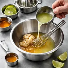 In a medium bowl, combine 60 g of white miso, 30 g of honey (2 tablespoons), and 60 ml of lime juice. Add 30 g of soy sauce (2 tablespoons) and 15 g of sesame oil (1 tablespoon). Whisk vigorously with a whisk or fork until a smooth, slightly thick emulsified dressing forms. If the mixture is too thick, add 5 ml of water at a time and stir until you achieve a liquid emulsion consistency that easily drips off a spoon.