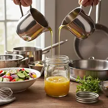 Przygotuj sos winegret. Do małego słoiczka z zakrętką wlej oliwę z oliwek oraz świeżo wyciśnięty sok z cytryny. Dodaj suszone oregano (rozcierając je w palcach, by uwolnić aromat), sól i świeżo mielony pieprz. Zakręć słoiczek i energicznie nim potrząsaj przez około 20-30 sekund, aż składniki połączą się w jednolitą, lekko mętną emulsję.