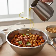 In a bowl with sweet potato and chickpeas, add olive oil, smoked paprika, a pinch of salt, and pepper. Mix everything thoroughly with your hands or a large spoon, ensuring each piece is evenly coated with the spices. Line a large baking sheet with parchment paper and spread the vegetables in a single, even layer. Place in the preheated oven and bake for 25-30 minutes, until the sweet potato is soft and slightly caramelized, and the chickpeas are golden and crispy. Halfway through baking (after about 15 minutes), stir the vegetables on the baking sheet.