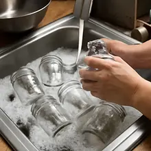 Prepare jars (6 pieces with a capacity of 300-350 ml). Wash them thoroughly in hot soapy water, rinse, and sterilize: place the jars and lids in a large pot of boiling water for 10 minutes, or place them on a baking sheet and bake in the oven at 120°C for 15 minutes (lids separately, not in the oven). Carefully remove and set upside down on a clean towel.