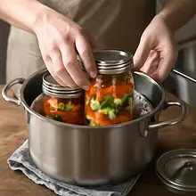 Place the filled and sealed jars in a large pot lined with a kitchen towel (to prevent the jars from clinking). Fill with cold water to about 2/3 the height of the jars. Bring the water to a boil, then simmer gently for 15 minutes (starting from the moment it boils). After turning off the heat, let the pot with the jars sit for 10 minutes. Remove the jars and place them upside down on a towel to cool completely (at least 12 hours). After cooling, check if the lids are concave — this is a sign of proper vacuum sealing.