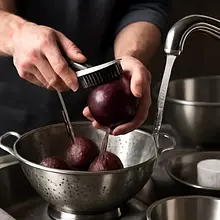 Preheat the oven to 200°C (top-bottom). Thoroughly wash the beets under running water, using a vegetable brush to remove the dirt. Trim the roots and stems thinly (do not cut too close to the bulb). Dry the beets with a paper towel. Wrap each beet individually in aluminum foil so that they are tightly packed (you can also place them on a baking sheet with a tablespoon of oil and cover with foil). Place the beets on the middle rack of the oven and bake for 50–70 minutes depending on their size (smaller ones 40–50 min, larger ones up to 70 min). Check for doneness by inserting a sharp knife or skewer into the largest beet – it should slide in smoothly without resistance.