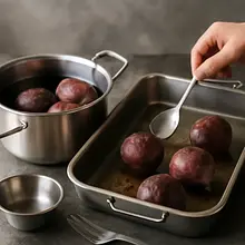 Choose a method for preparing the beets: roasting (recommended for deep flavor) or boiling. If roasting: preheat the oven to 200°C. Wash the beets thoroughly under running water, trim the leaves leaving about 2 cm of the stem (to prevent juice leakage), and dry. Wrap each beet individually in aluminum foil or place them all on a baking sheet lined with foil and cover. Roast for 45–60 minutes depending on size (smaller ones 30–45 min). Check with a fork or knife — it should easily pierce through. If boiling: place unpeeled beets in a pot, cover with cold water 2–3 cm above the vegetables, add salt with a glass of water (a small amount of salt), bring to a boil, reduce the heat and cook for 30–40 minutes until tender. After roasting/boiling, set aside to cool, do not peel while hot (it will be easier to remove the skin after slightly cooling).