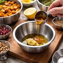 In a small bowl, combine 15 g Dijon mustard, 30 g honey, 30 ml fresh lemon juice, and 15 g olive oil. Whisk vigorously with a whisk or fork for about 30 seconds, until the ingredients form a smooth emulsion. Season with 1 g salt and 1 g freshly ground pepper, taste, and adjust the flavor if necessary (more lemon juice for acidity, more honey for sweetness).