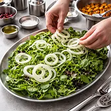 Serve the salad on a flat platter so the colorful ingredients are clearly visible. For guests, prepare individual portions on plates with extra dressing on the side. You can add thinly sliced smoked salmon or slices of roasted chicken to the salad if you want a non-vegetarian version.