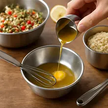 Measure 200 g of quinoa. Place the grains in a fine sieve and rinse under cold running water using your hand (vigorously rubbing the grains for about 30 seconds) until the water runs clear — this removes the bitter coating (saponins). Transfer the rinsed quinoa to a medium pot (capacity 1.5–2 L). Add 400 ml of water and 2 g of salt (from half the amount of salt on the list). Cover with a lid and bring to a boil over medium-high heat. When it starts to boil, reduce the heat to low and cook covered for 12–15 minutes, until the water is absorbed. After this time, turn off the heat and let the pot sit covered for 10 minutes to allow the grains to "rest."