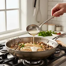 Gently heat the sauce over low heat for 2-3 minutes until it thickens slightly. Do not bring it to a vigorous boil. Season the sauce to taste with salt and white pepper. The sauce should be creamy and velvety.