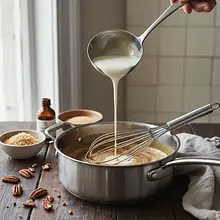Remove the saucepan from the heat. Slowly, in a thin stream, pour in 100 ml of heavy cream while continuously whisking vigorously (be careful, the mixture will bubble and splatter!). If you are using bourbon, add it now. Add the pecans and gently mix to coat them all in the caramel. Set the mixture aside for 10-15 minutes to cool slightly and thicken.